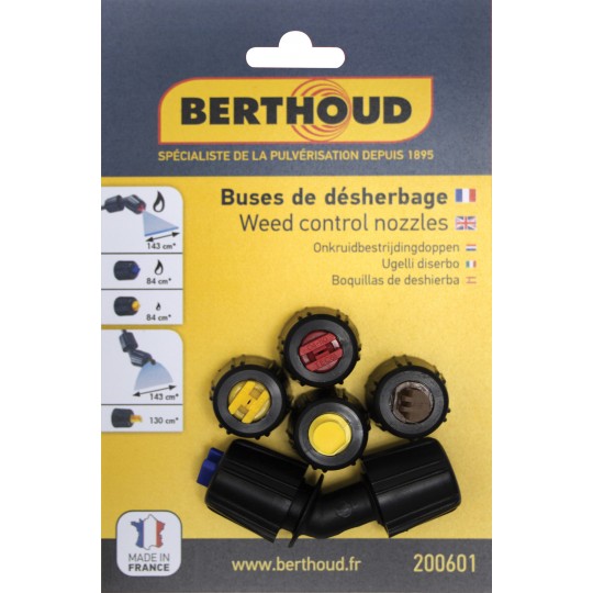 Kit de buses Spécial Désherbage BERTHOUD comprenant 5 buses et un support de buses coudé