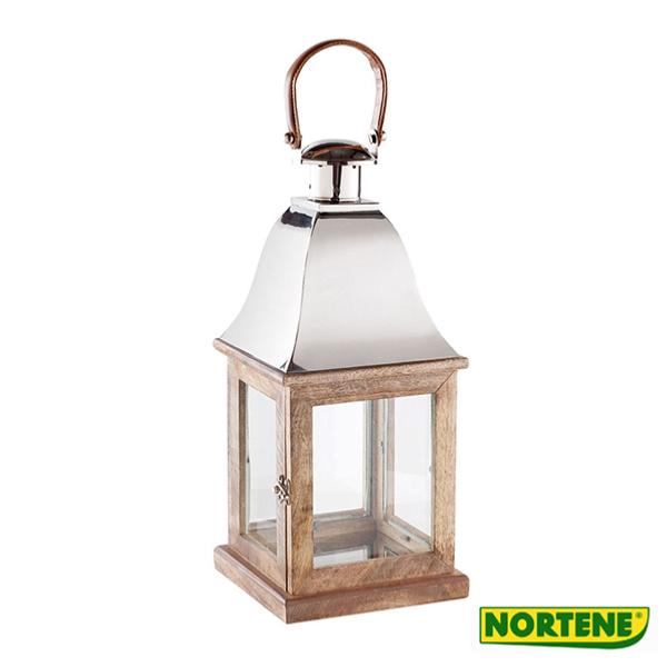 Lanterne India Bois /Toit Métal et Poignée Cuir Nortene
