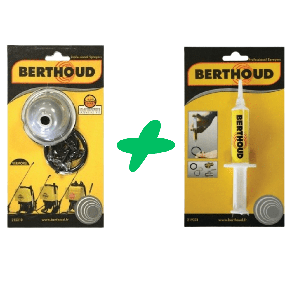 Pack composé d’une graisse silicone en seringue, d’un kit de joints et d’une membrane pour tous modèles de type Vermorel.