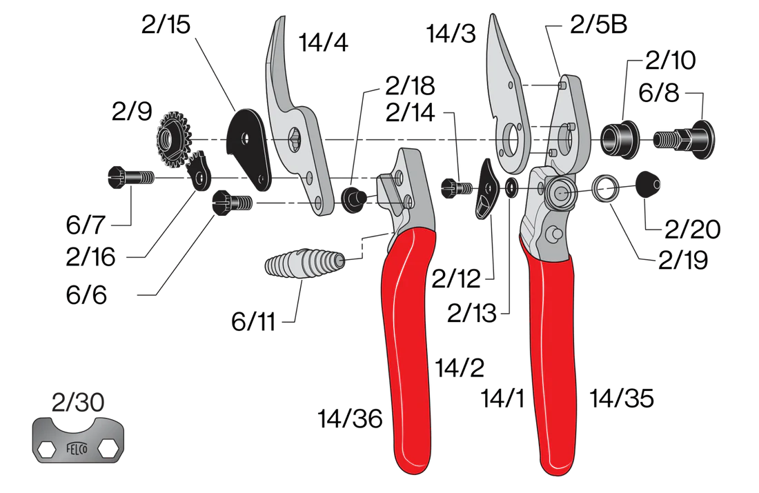 Pièces détachées pour sécateur FELCO 14 disponibles. Vous ne trouvez pas la pièce détachée dont vous avez besoin, contactez-nous par téléphone pour obtenir un devis.